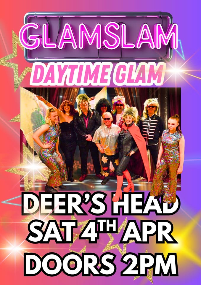 The Mighty GlamSlam come back for another storming Saturday afternoon gig in the Deer’s Head. A blistering set of 70s and 80s classics from the likes of Abba, Bowie, Sweet, T.Rex, ELO, Showaddywaddy, Bay City Rollers, Suzi Quatro and many more! Johnny Hero will also be there blasting out his 70S and 80s Disco. THIS SOLD OUT VERY QUICKLY LAST YEAR.