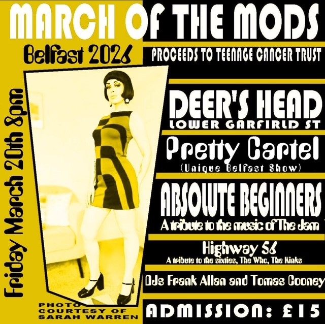 March of the Mods returns to the Deer’s Head, Belfast for another year on Friday the 20th of March. Once again, all proceeds will go to Teenage Cancer Trust.